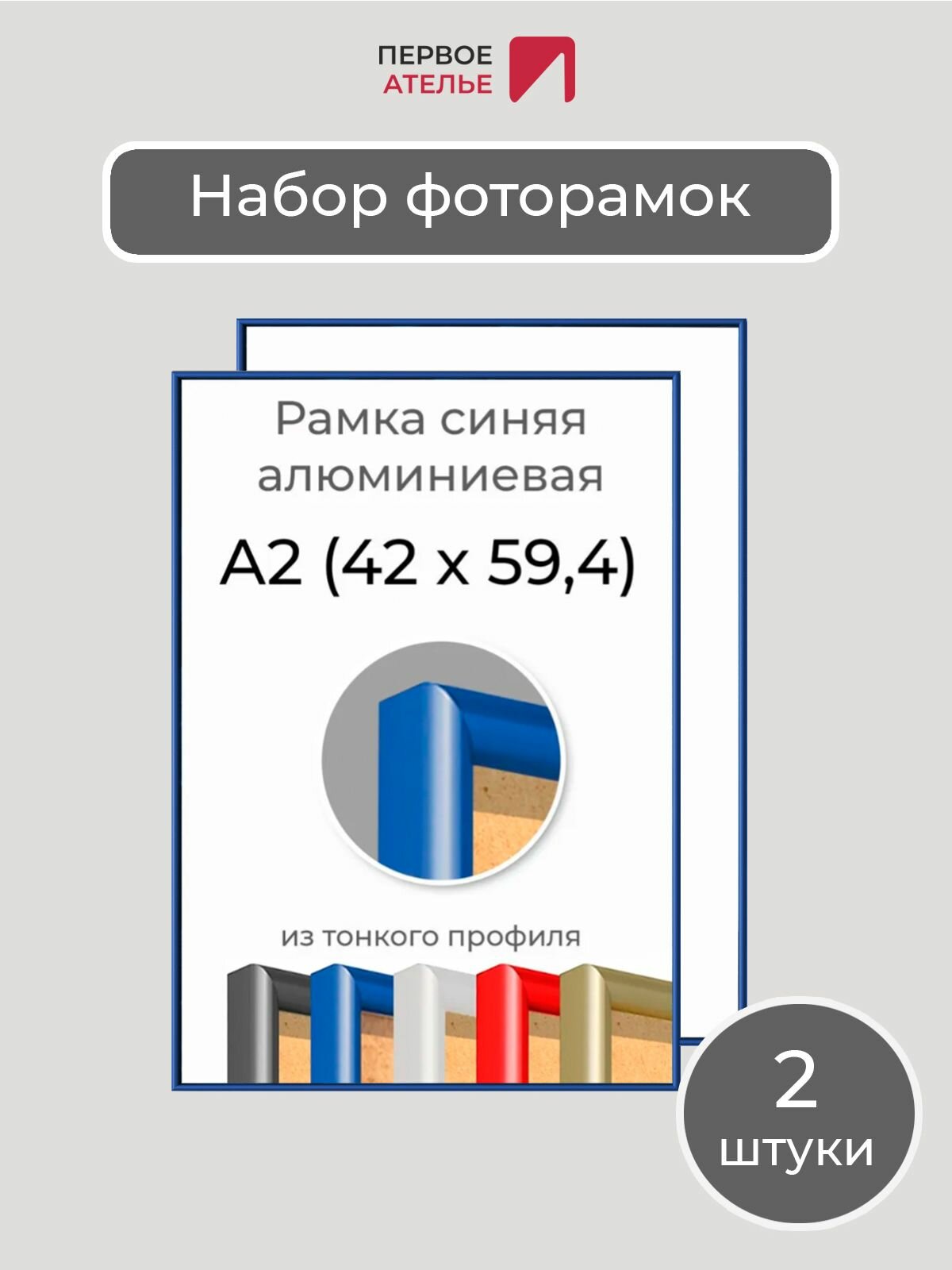 Набор рамок А2, 2 штуки Первое ателье «Синяя алюминиевая фоторамка 42х60 см» для фото, постера, грамоты, диплома и сертификата