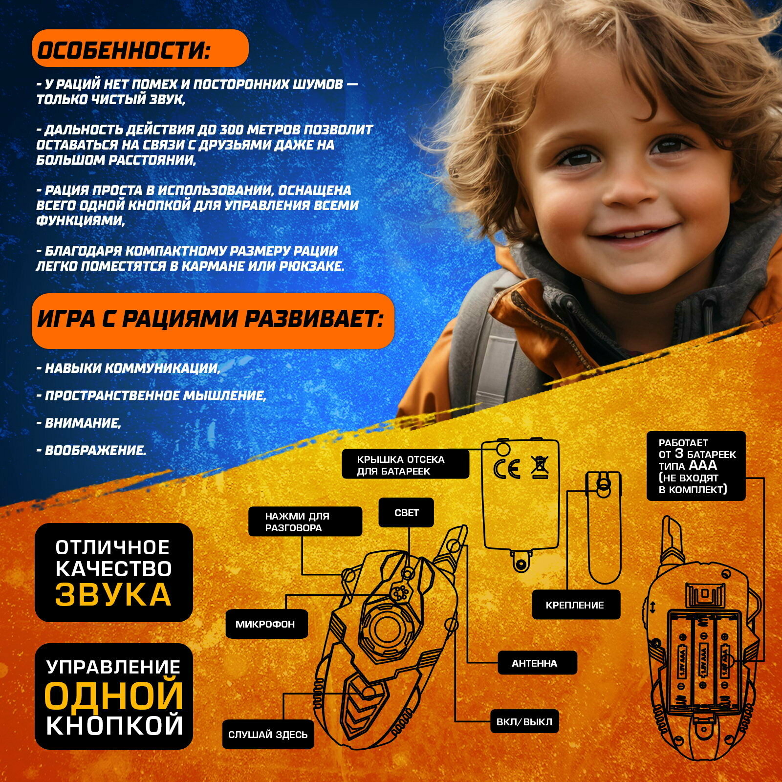 Набор раций «Отряд Альфа», без шума, дальность действия до 300 метров, работает от батареек: сравнение цен, характеристики, фото, актуальное наличие и цены.