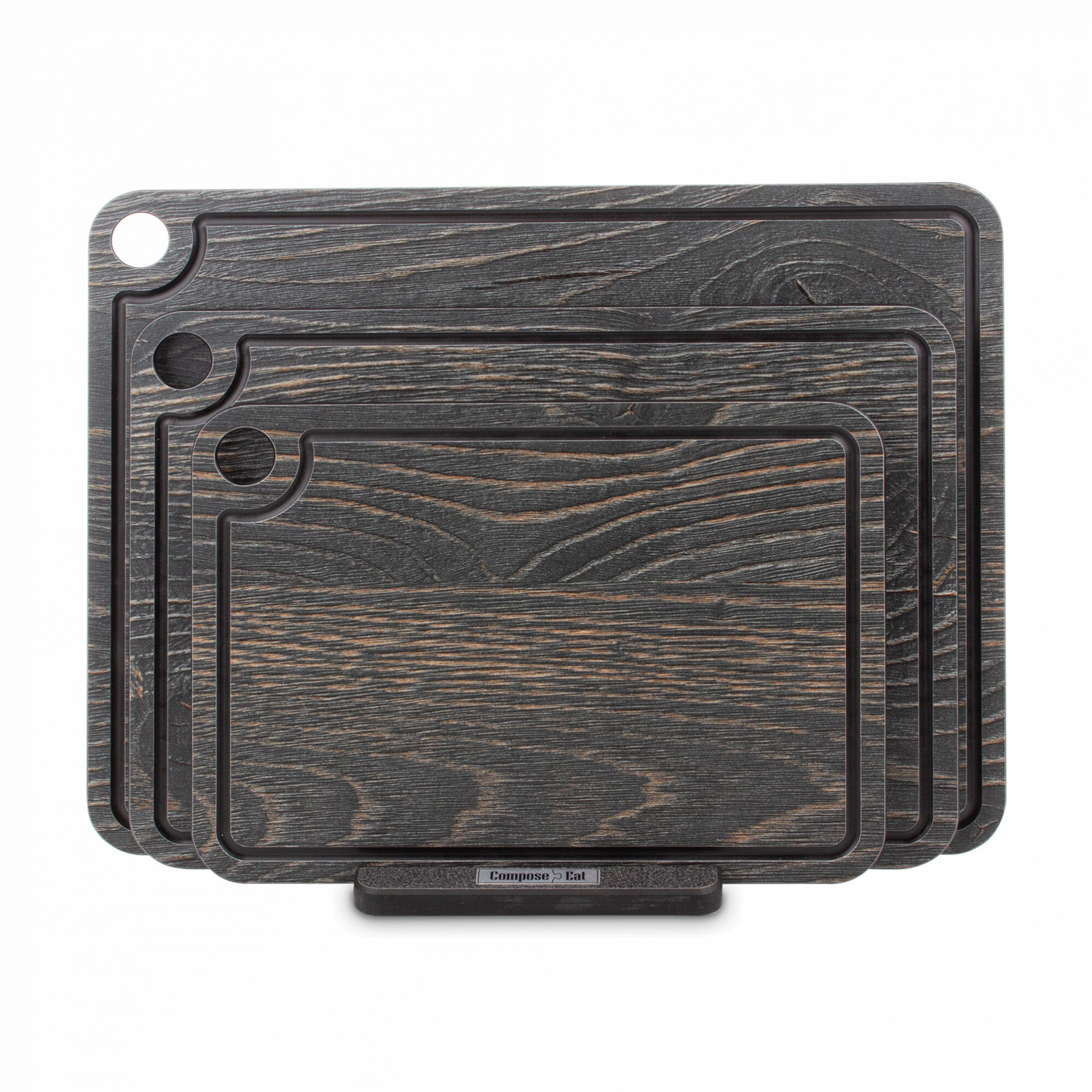 | Подробная комплектация | Доска разделочная с желобом, размер 24х18 см Доска разделочная c желобом, размер 29х20 см Доска разделочная c желобом, размер 33х25 см Подставка для трех разделочных досок |