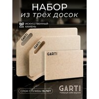 Набор разделочных досок от Гарти выполнен из искусственного камня, который не впитывает вкусы, запахи и не скапливает грибок. Это экологичный материал, который не тупит ножи и служит долгие годы.