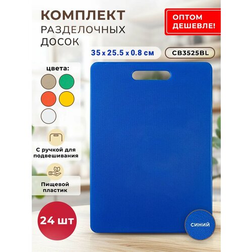 Набор пластиковых разделочных досок Gastrorag CB3525BL голубого цвета в количестве 24 штук – это принадлежности для профессиональной и домашней кухни, которые очень популярны не только качестве инвентаря для ресторанов, кафе, столовых, но и в качестве посуды для дома и дачи, пикника и отдыха на природе с традиционными шашлыками. Кухонная утварь изготовлена из полиэтилена низкой плотности (LDPE). Это прочный материал, который устойчив к образованию царапин под воздействием лезвия ножа и не тупит ножи. Кроме того, он обладает высокой стойкостью к воздействию кислот и щелочей, не впитывает влагу и запахи, не выделяет токсичных веществ и безопасен для человека и окружающей среды. Досточки имеют размеры 35х25х0.8 см, удобную ручку для подвешивания и прямоугольную форму с закругленными углами, не гнутся и плотно прилегают к столешнице. Продукты можно резать с обеих сторон. Большие доски с рифленой поверхностью подойдут не только для нарезки продуктов, но и для отбивания мяса, раскатки теста, а также в качестве сервировочных досок для подачи блюд. Используя их для сервировки стола, помните о том, что полиэтилен не является термостойким материалом и горячую посуду на него ставить нельзя. В соответствии с нормами HACCP, чтобы избежать перекрестного загрязнения, на профессиональной кухне в каждом цехе приспособления для кулинарии и инвентарь должны иметь свою цветовую маркировку. Разделочные доски белого цвета предназначены для резки хлеба, хлебобулочных изделий и молочных продуктов. Конечно, в домашних условиях соблюдать эти требования не обязательно, вы можете купить белые доски и использовать их как угодно. Пластиковый инвентарь прост в уходе, его можно мыть как вручную, так и в посудомоечной машине при температуре не выше 60оС. Разделочные доски Gastrorag станут отличным подарком как профессиональному повару, так и женщине, домашней хозяйке: матери, жене, бабушке.