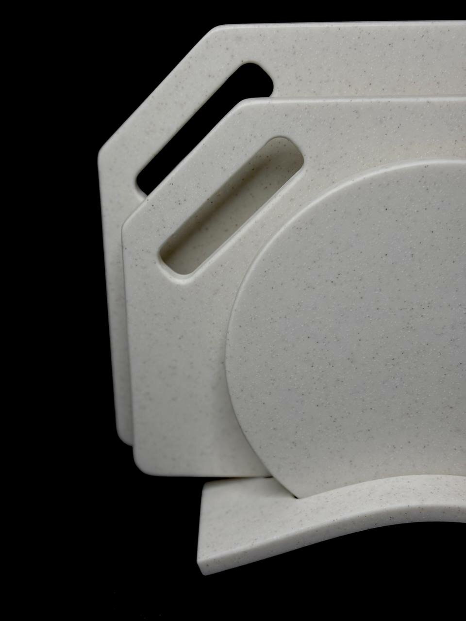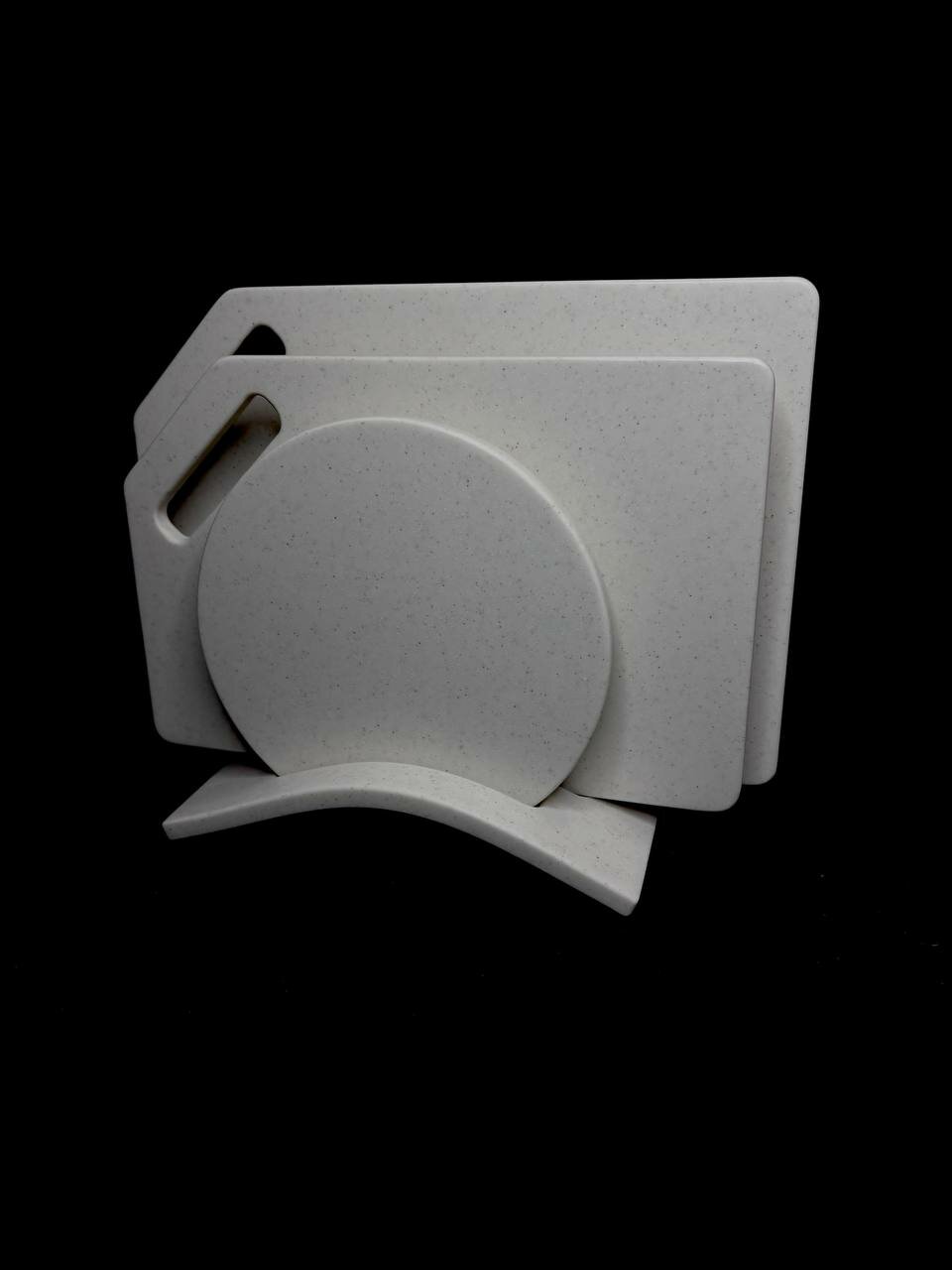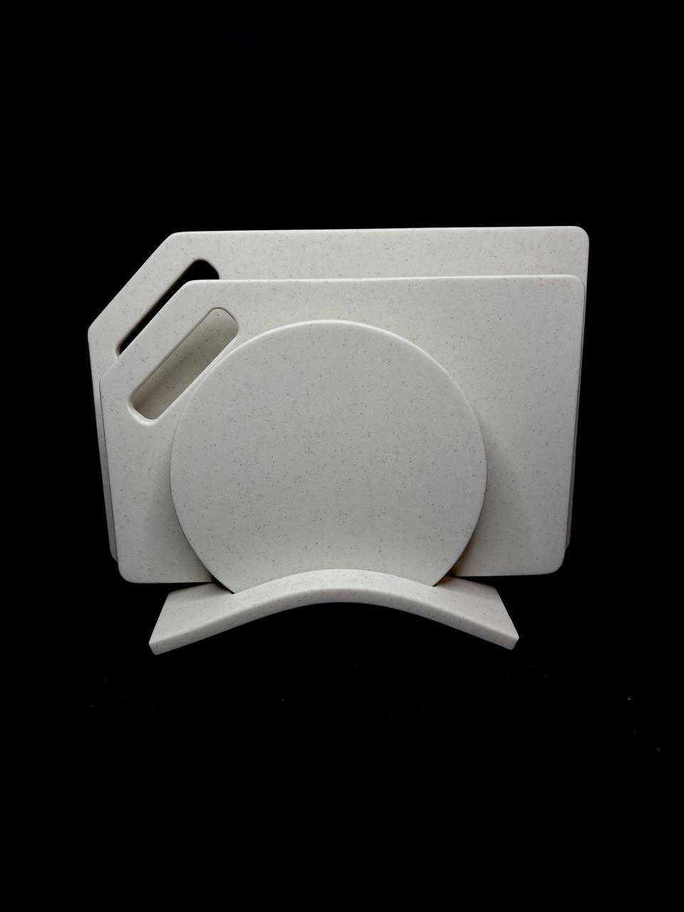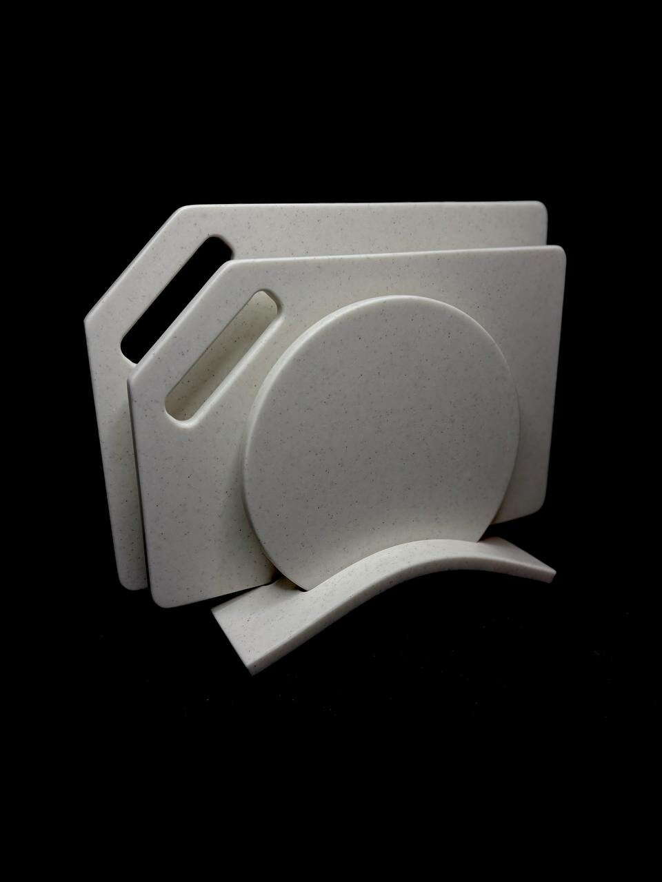 Набор разделочных досок » молочно белый с вкраплениями » из искусственного камня 3 в 1 на подставке