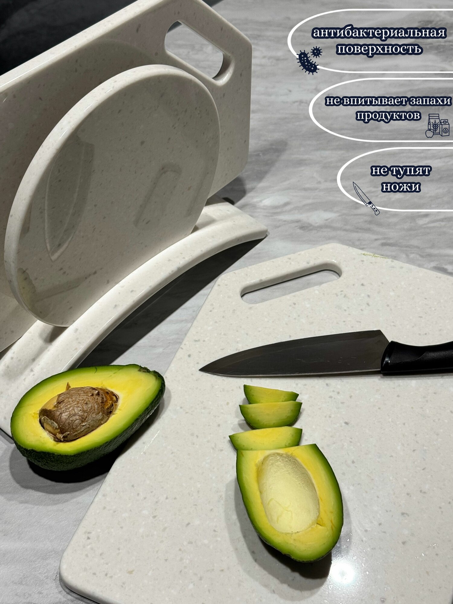 Купить Набор разделочных досок на подставке (3 шт), искусственный камень , матовая поверхность, Не впитывает запахи и вкусы, Долговечна, сервировочная доска с доставкой по всей России.