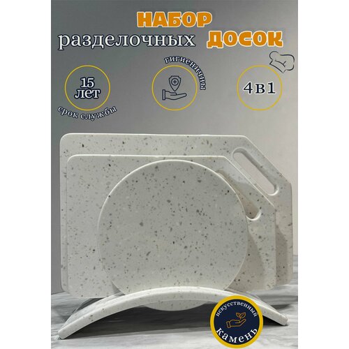 Набор разделочных досок на подставке (3 шт), искусственный камень , матовая поверхность, Не впитывает запахи и вкусы, Долговечна, сервировочная доска