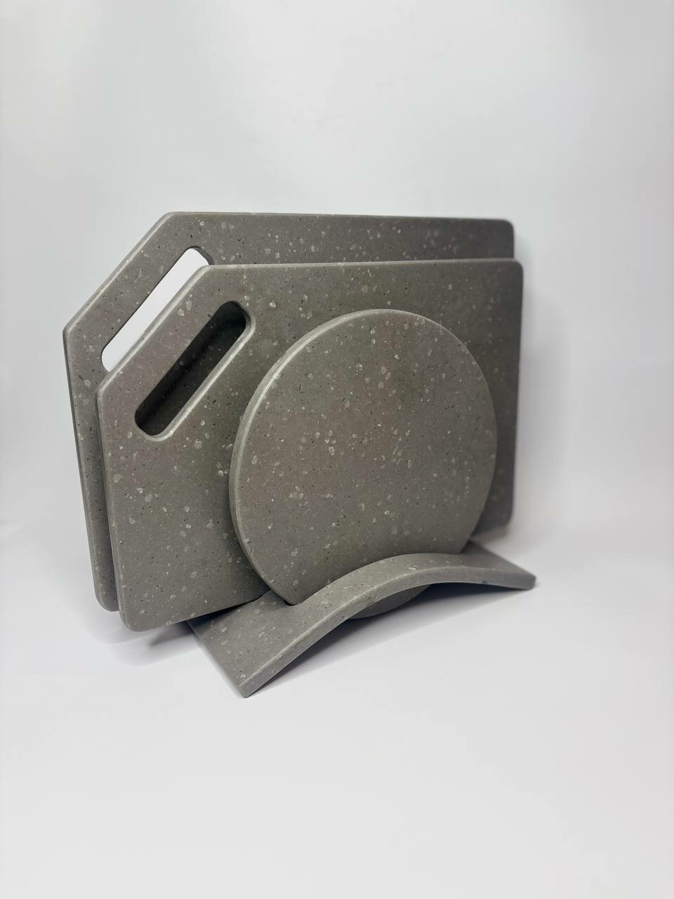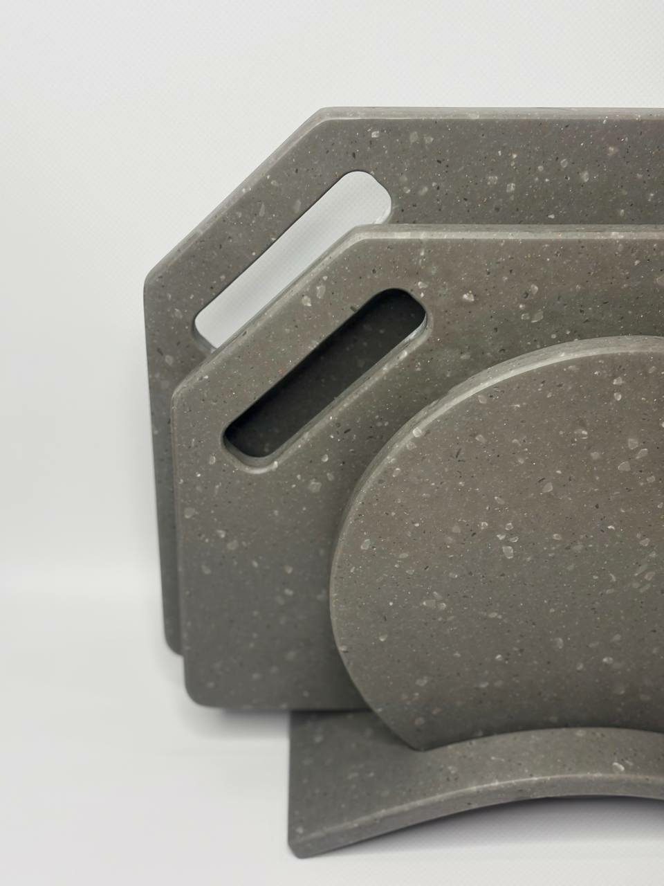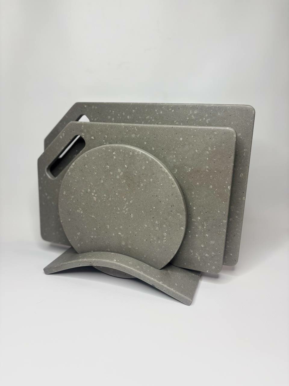 Набор разделочных досок «олово» из искусственного камня 3 в 1 на подставке