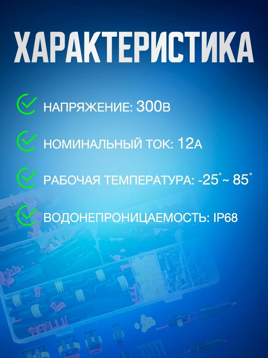 Набор разъемов влагозащищенных электрических коннекторов для машины в боксе 708 предметов. 1/2/3/4/5/6 pin, 43 комплекта.