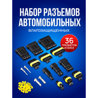 Набор разъемов автомобильных влагозащищенных, 36 предметов, в пластиковом кейсе: сравнение цен, характеристики, фото, актуальное наличие и цены.
