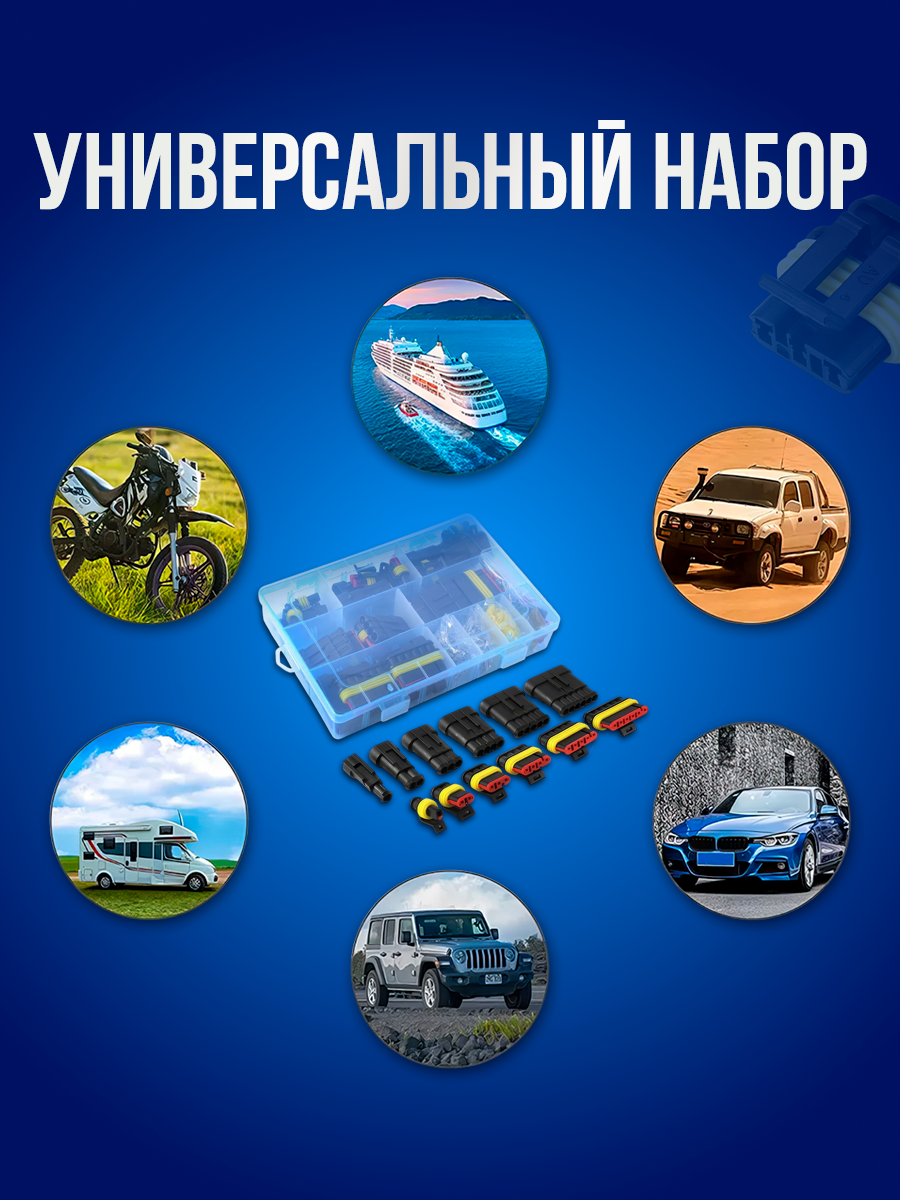 Набор разъемов для автомобиля, 108 предметов в пластиковом кейсе, влагозащищённые: сравнение цен, характеристики, фото, актуальное наличие и цены.