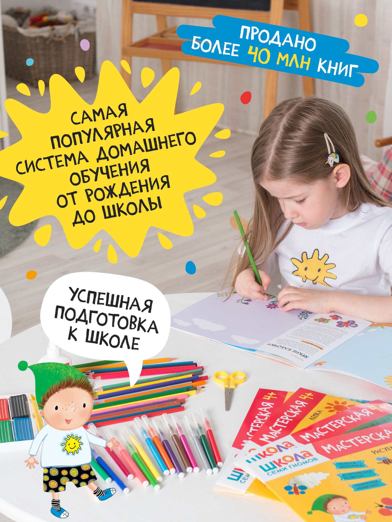 «Школа Семи Гномов. Мастерская 4+» представляет собой увлекательный набор альбомов с занятиями для детей от 4 до 5 лет. С этим подарочным комплектом ваш ребенок откроет мир развивающих занятий и творчества. Пошагово, с увеличением сложности заданий, малыш погрузится в мир творчества, создавая уникальные поделки. Всего в программу комплекта входит 5 развивающих альбомов, по которым ребенок изучит разные виды творчества: аппликация, декоративное творчество, лепка, рисование карандашами и красками.