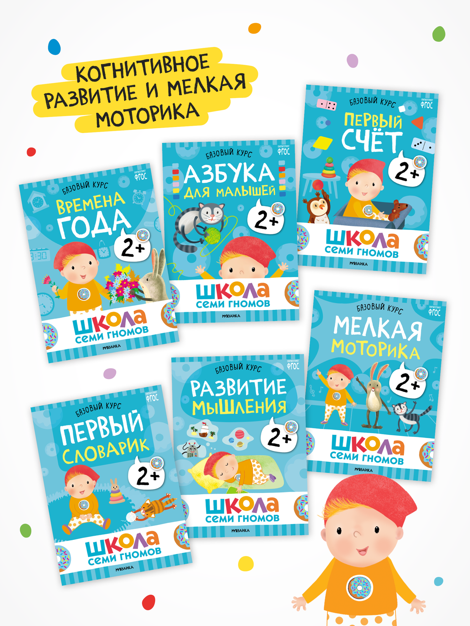 Базовый курс 2+ (Серия «Школа Семи Гномов. Базовый курс»), 6 книг ("Времена года", "Азбука для малышей", "Первый счет", "Первый словарик", "Развитие мышления", "Мелкая моторика")+ развивающие игры.
