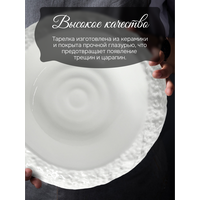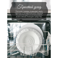 Подобно тому, как ветер и вода веками создавали причудливые формы скал, так и искусная рука мастера сотворила эти холмы и долины на белоснежном полотне. Взгляд скользит по поверхности тарелки, словно по бескрайним просторам, огибая неровности и впадины, как будто путешествуя по горным тропам.
