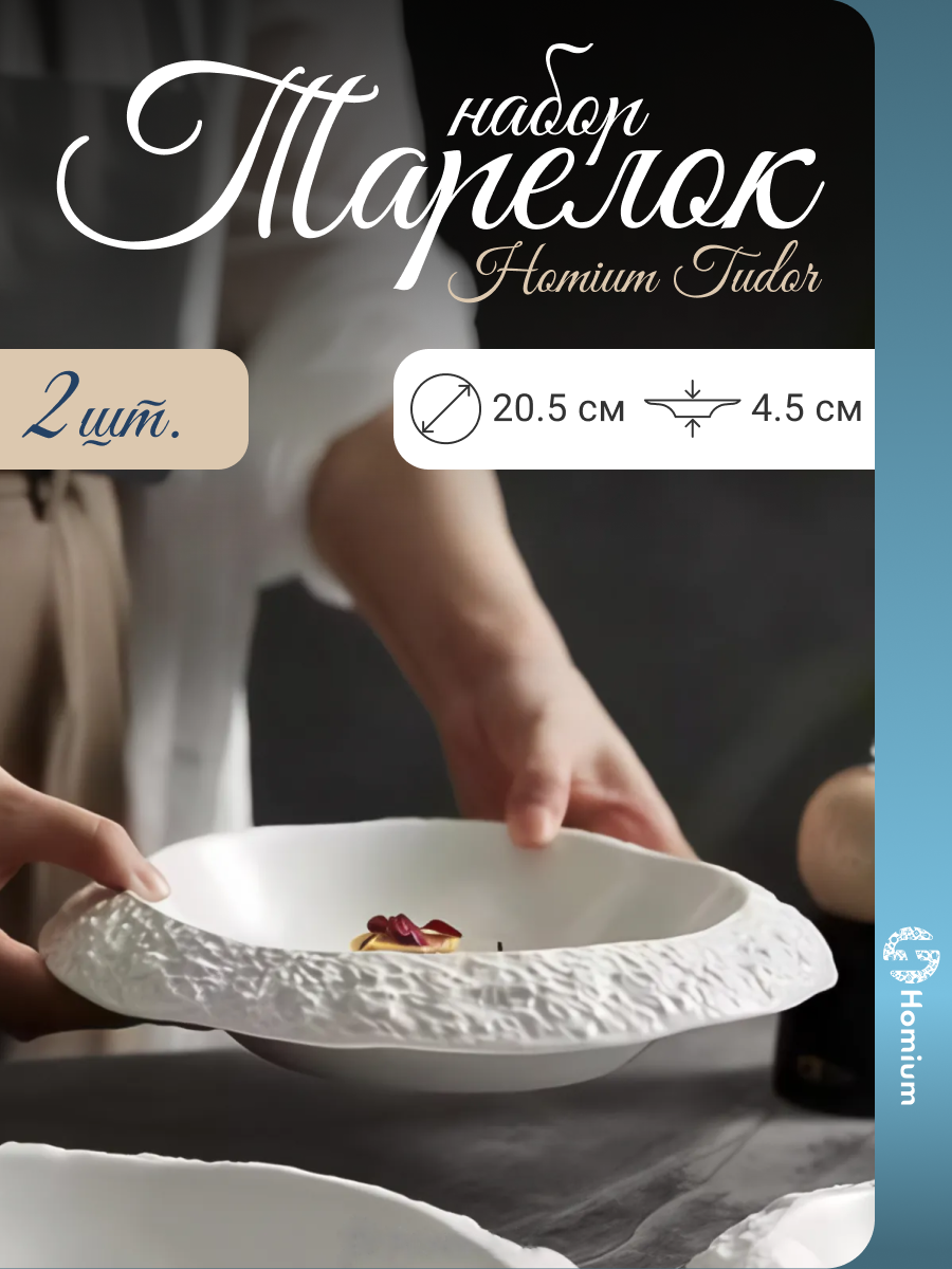 Представьте себе: изысканная скатерть, сияющие столовые приборы, хрустальные бокалы, искусно расставленный набор из 2 тарелок Homium Tudor – все это создает неповторимую атмосферу, в которой каждый прием пищи превращается в маленький праздник.