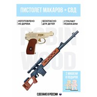 макет-резинкострел винтовки СВД, макет-резинкострел пистолета Макарова (ПМ), комплект зарядов, комплект мишеней, инструкция на русском языке