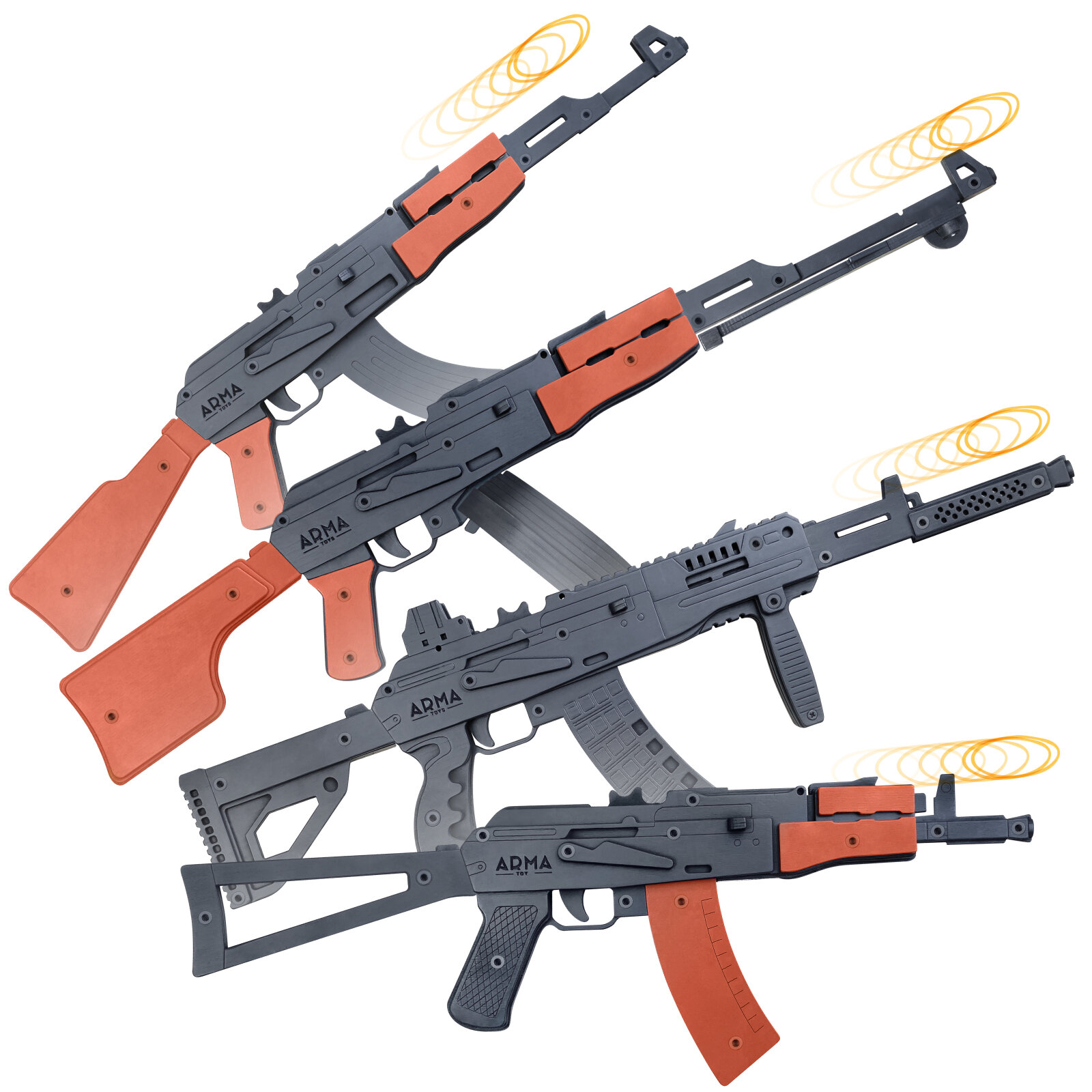 Купить Набор резинкострелов Огневая мощь: Автоматы Ак-47, АК-12, АКС-74У и пулемет РПК с доставкой по всей России.