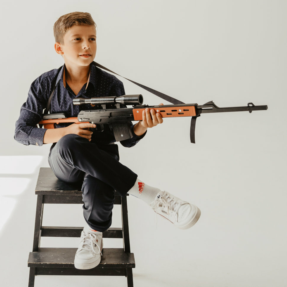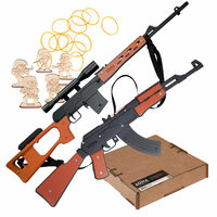 винтовка-резинкострел СВД, автомат-резинкострел АК-47, комплект зарядов, комплект мишеней, инструкция на русском языке