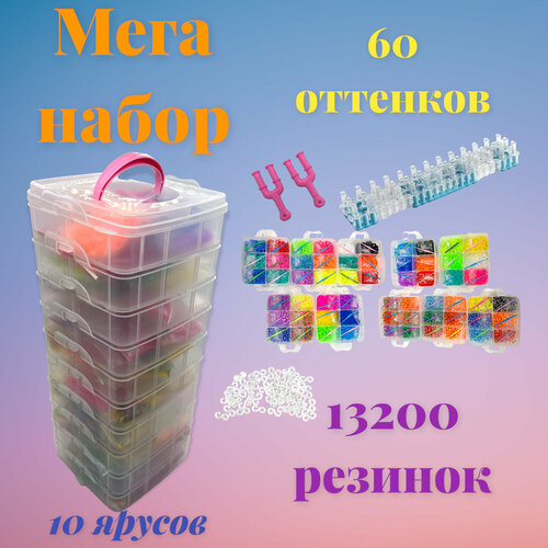 Набор резинок для плетения браслетов 13200 резинок, 10 ярусов, разноцветные,крючки(станок НЕ входит В комплект): сравнение цен, характеристики, фото, актуальное наличие и цены.