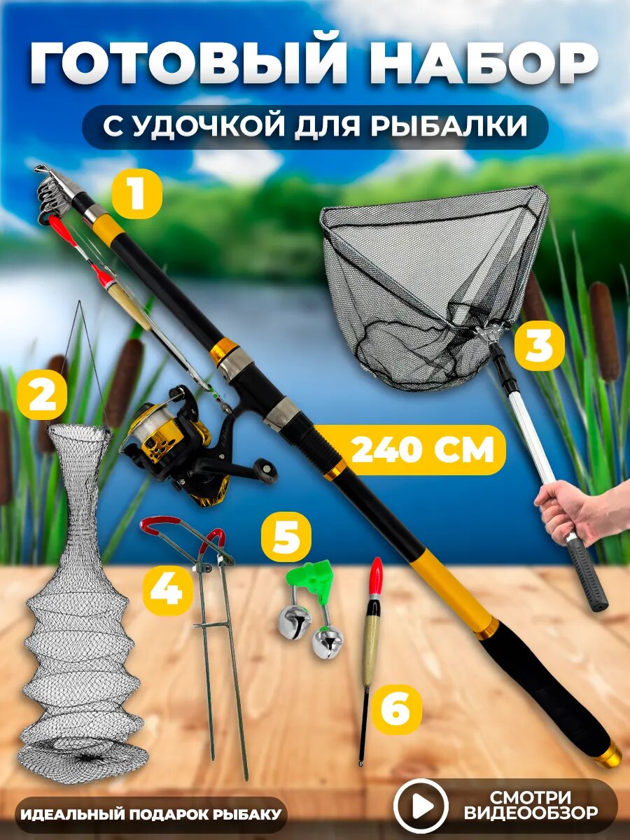 Добрый день, друзья рыболовы! Рады представить вам наш рыболовный набор для поплавочной рыбалки! В данном наборе рыбака представлена оснащенная готовая удочка 240 сантиметров все снасти и аксессуары для успешной рыбалки. В комплект подарочного набора рыбака входят: Удочка телескопическая универсальная готовая и оснащена! Подсак для рыбы складной телескопический, садок для рыбы, подставка под удилище, дополнительный поплавок и колокольчик бубенчик. Отличный большой комплект снастей для юного или опытного рыбака! Подарочный Рыболовный набор для рыбака содержит все необходимое для успешной рыбалки в любое время года. Подарочный набор мужчине для рыбалки - это лучший подарок для настоящего рыболова. В наборе есть все необходимое для успешной рыбалки, будь то летняя рыбалка или зимняя рыбалка. Такой подарок обязательно понравится мужчинам, любящим рыбалку и охоту. Данный набор можно использовать даже на обычной палке и вылавливать рыбу. Не упустите возможность приобрести наш подарочный набор для рыбалки. Все необходимое снаряжение и аксессуары для рыбалки уже внутри, чтобы сделать вашу рыбалку комфортной и результативной. Веселитесь и наслаждайтесь с нашим набором для рыбалки!