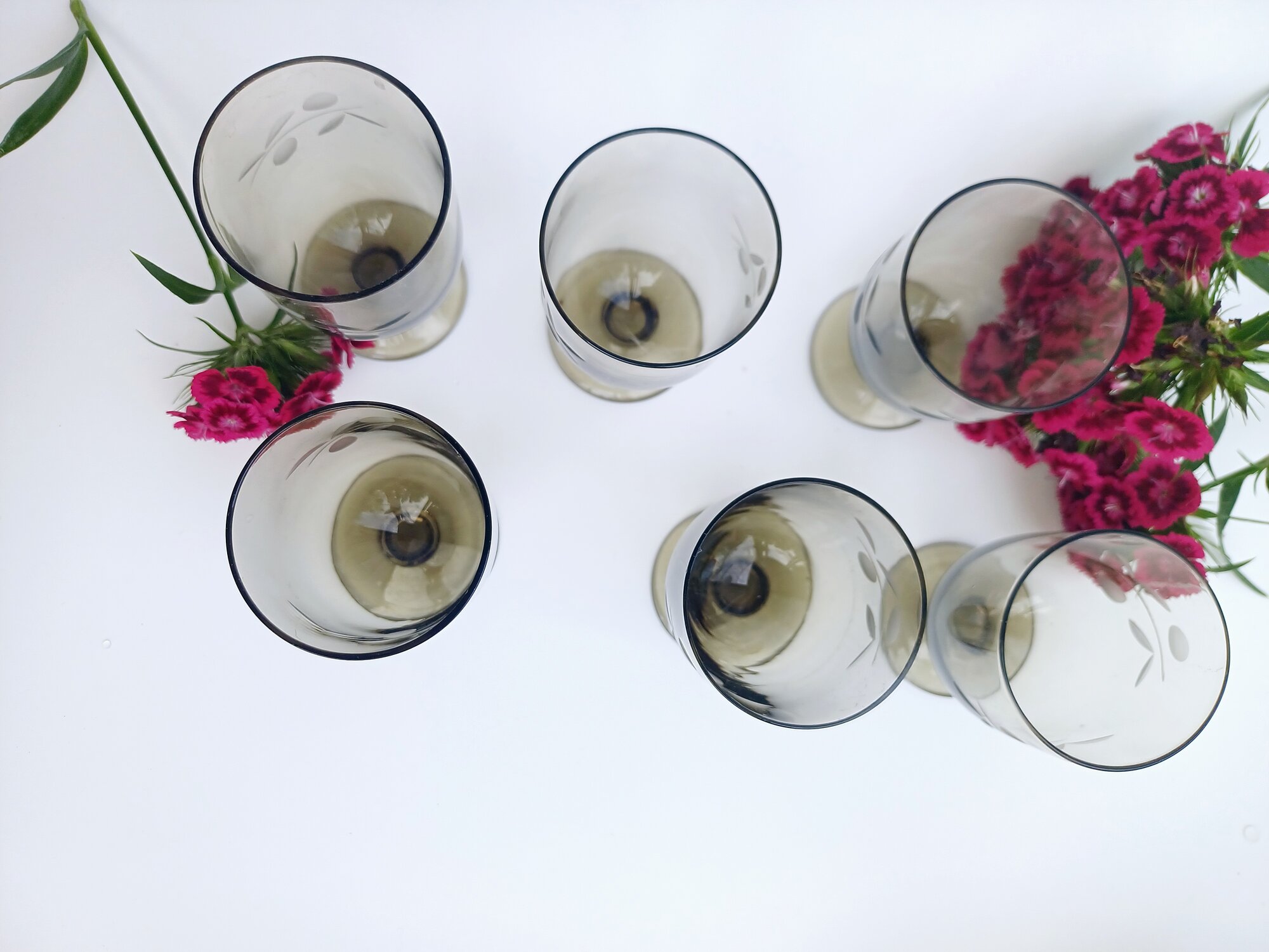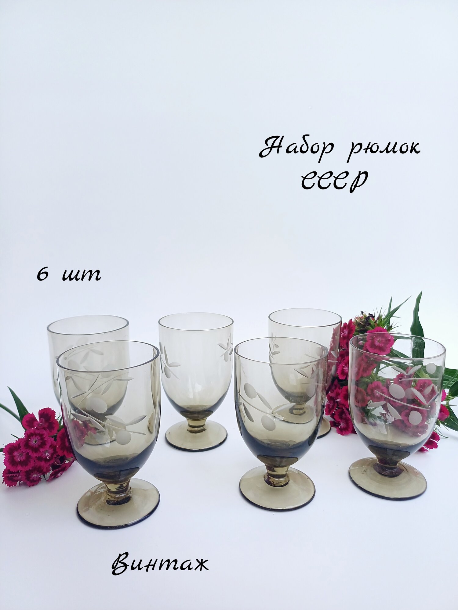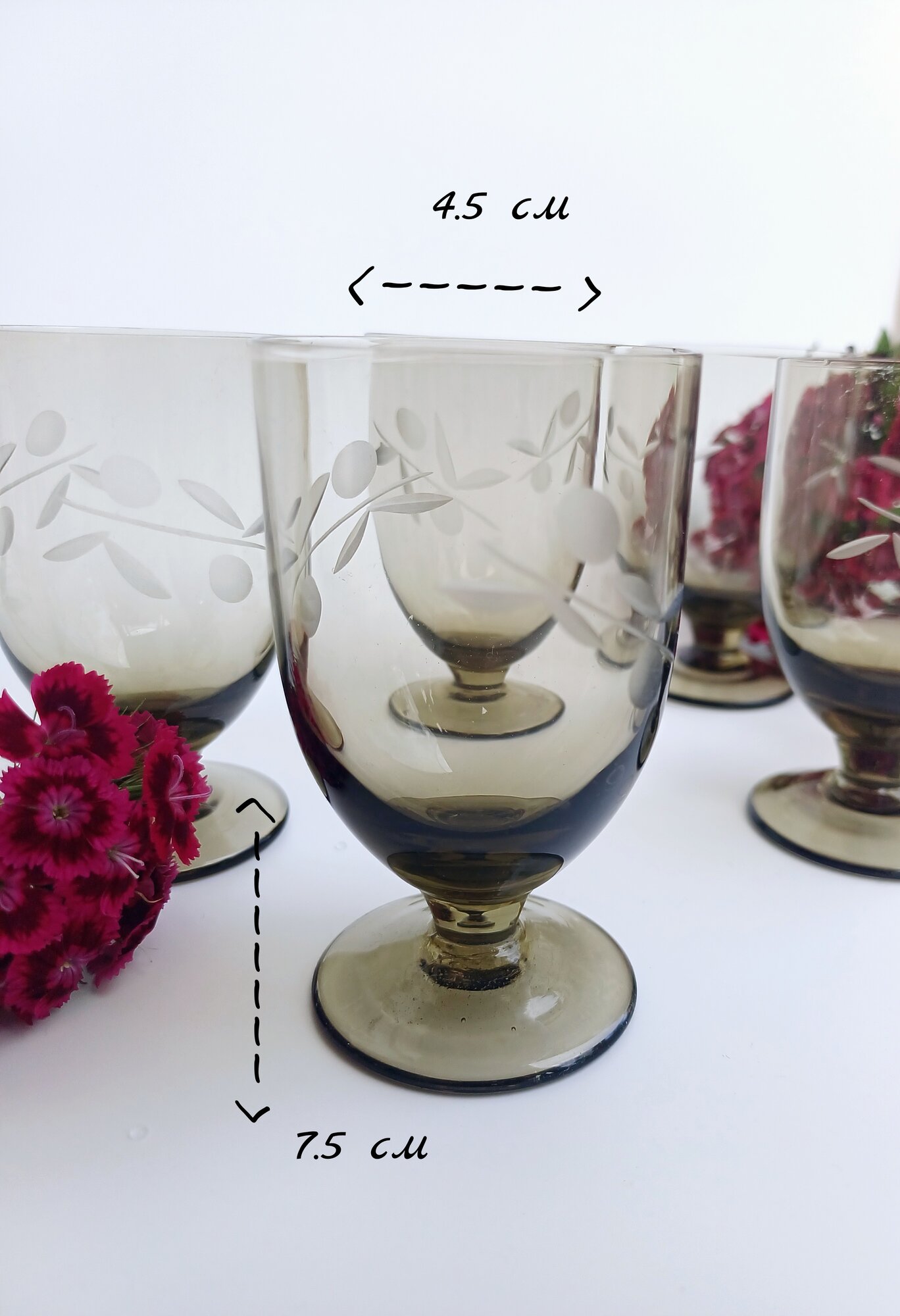 Набор рюмок из цветного дымчатого стекла с растительным рисунком винтажный, стекло, СССР: сравнение цен, характеристики, фото, актуальное наличие и цены.
