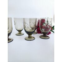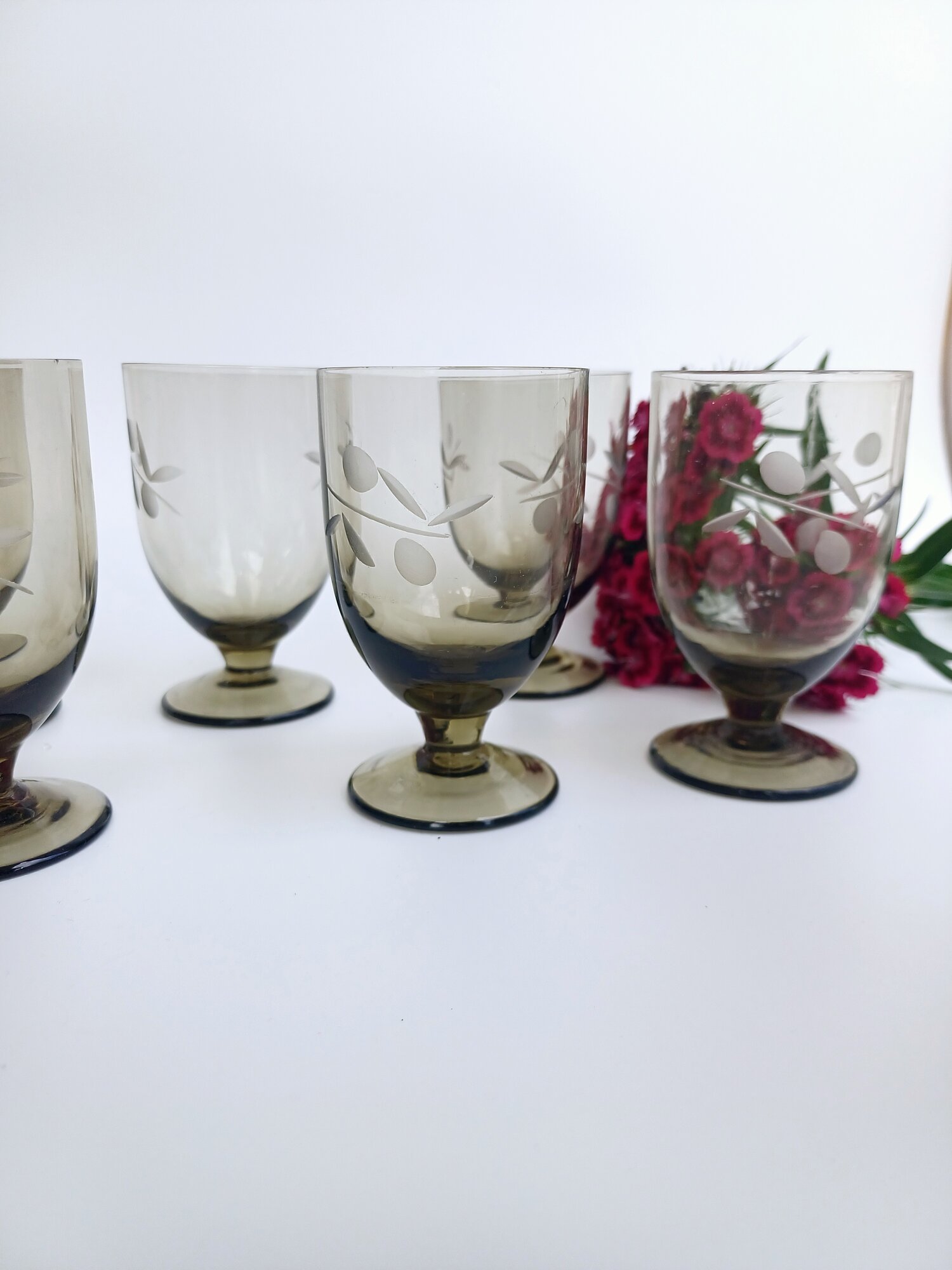 Купить Набор рюмок из цветного дымчатого стекла с растительным рисунком винтажный, стекло, СССР с доставкой по всей России.