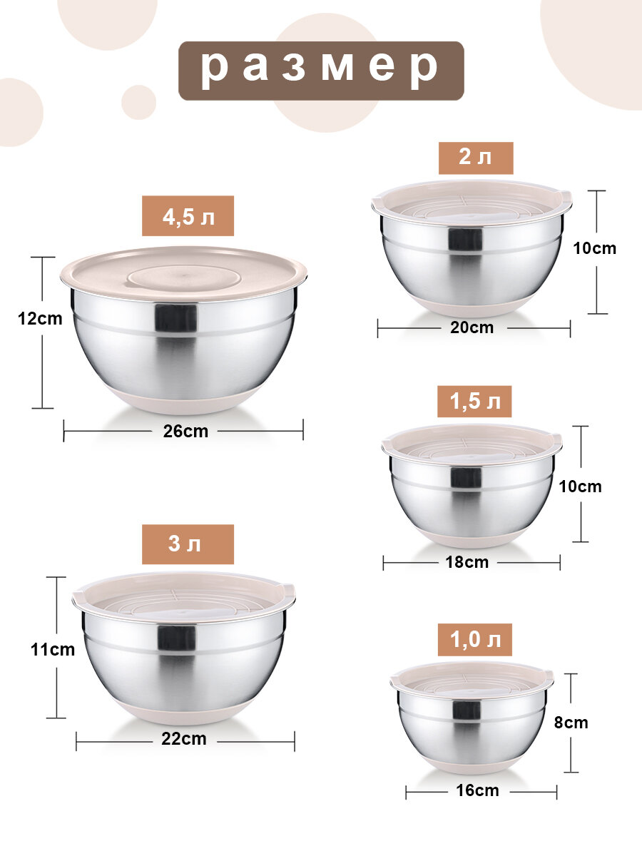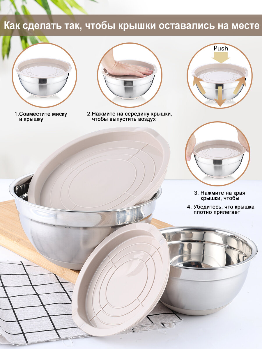 Набор с крышками мисок из нержавеющей стали для салатов и хранения, 5 шт: сравнение цен, характеристики, фото, актуальное наличие и цены.