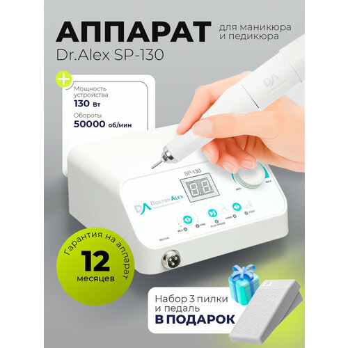 Набор с подарком Dr.Alex аппарат для маникюра и педикюра SP-130 + подарок (3 пилки для ногтей): сравнение цен, характеристики, фото, актуальное наличие и цены.
