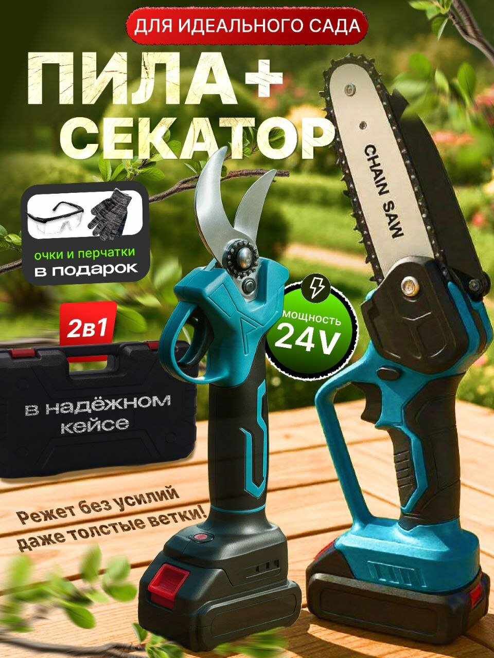 Купить Набор садовода, цепная пила (аккумуляторная) и секатор (аккумуляторный) с доставкой по всей России.