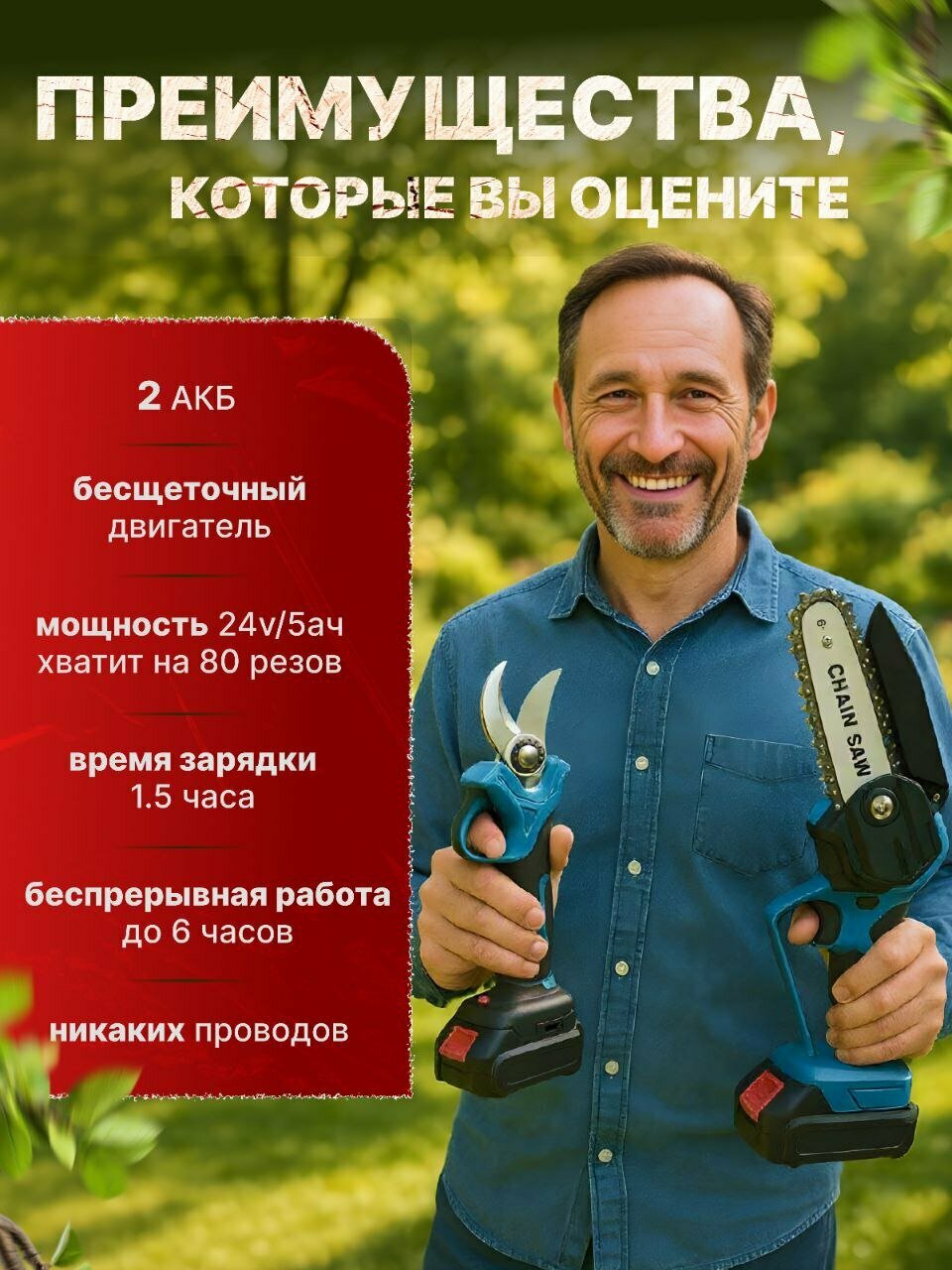 Набор садовода, цепная пила (аккумуляторная) и секатор (аккумуляторный): сравнение цен, характеристики, фото, актуальное наличие и цены.