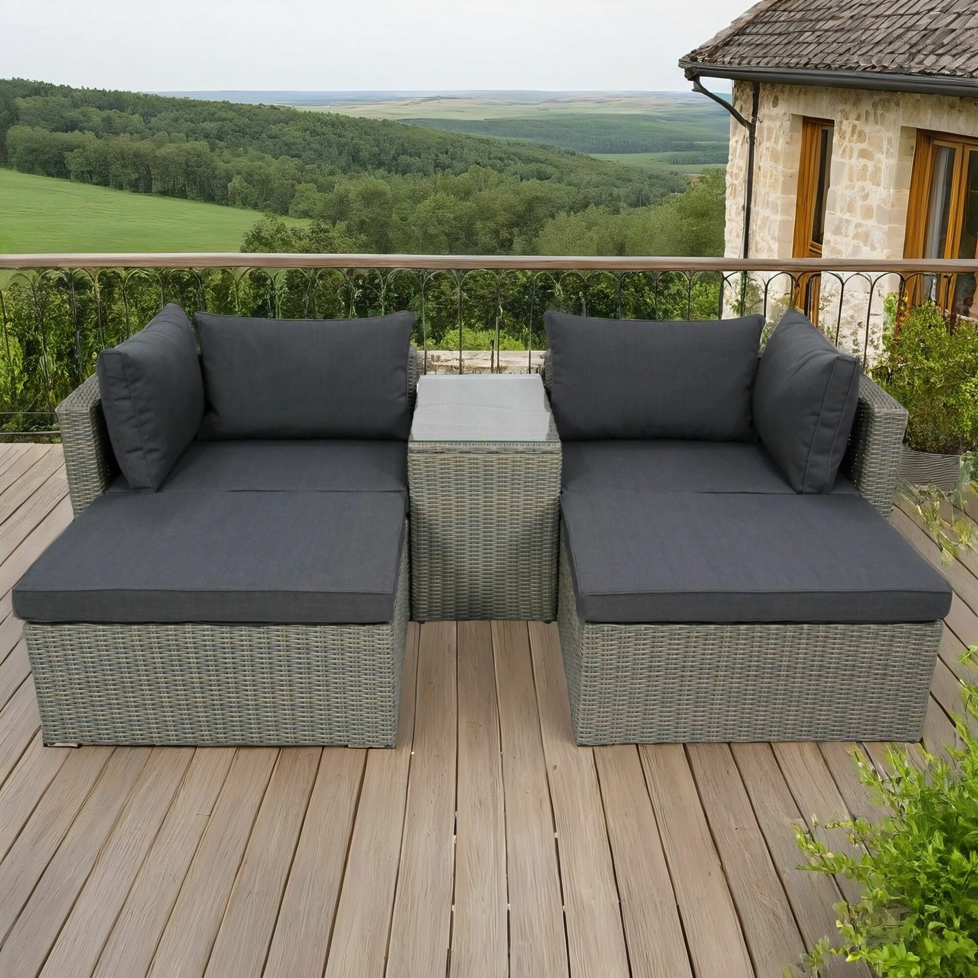 Набор садовой мебели "Драмен" - идеальное решение для создаваемия уютной атмосферы в вашем саду, на даче или в кафе. Этот стильный комплект мебели для четырех персон выполнен из искусственного ротанга серого цвета, что обеспечивает не только эстетическую привлекательность, но и долговечность. Мебель из ротанга отличается высокой устойчивостью к погодным условиям, что делает её идеальной для использования на открытом воздухе.