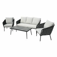 В этом комплекте найдется всё необходимое для комфортного пребывания на улице. Устойчивый к солнцу и осадкам материал гарантирует долговечность и легкость в уходе, что особенно важно для мебельного гарнитура, предназначенного для использования на улице.