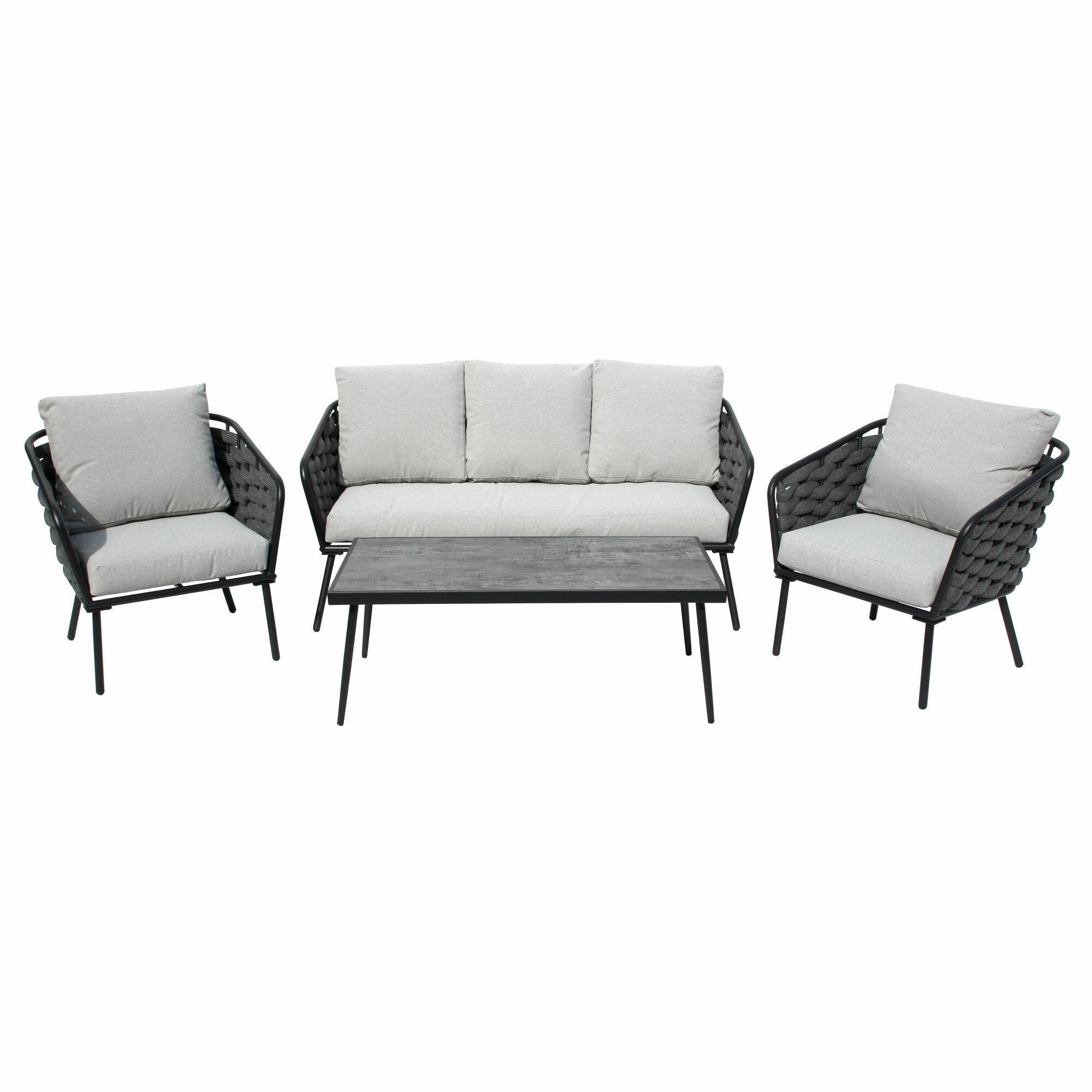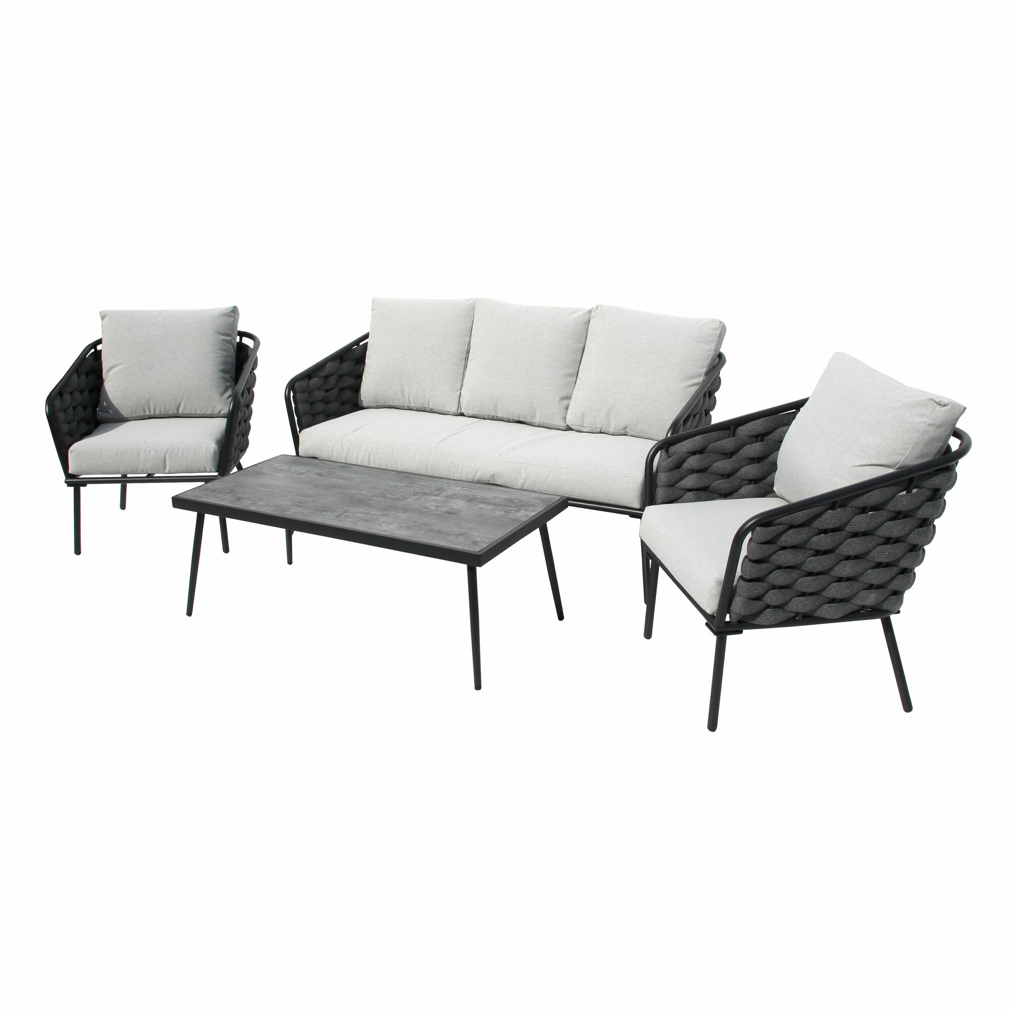 Этот современный набор мебели идеально подойдет для террасы, беседки или сада. Он сочетает в себе прочность, удобство и лаконичный дизайн, который впишется в любое пространство.