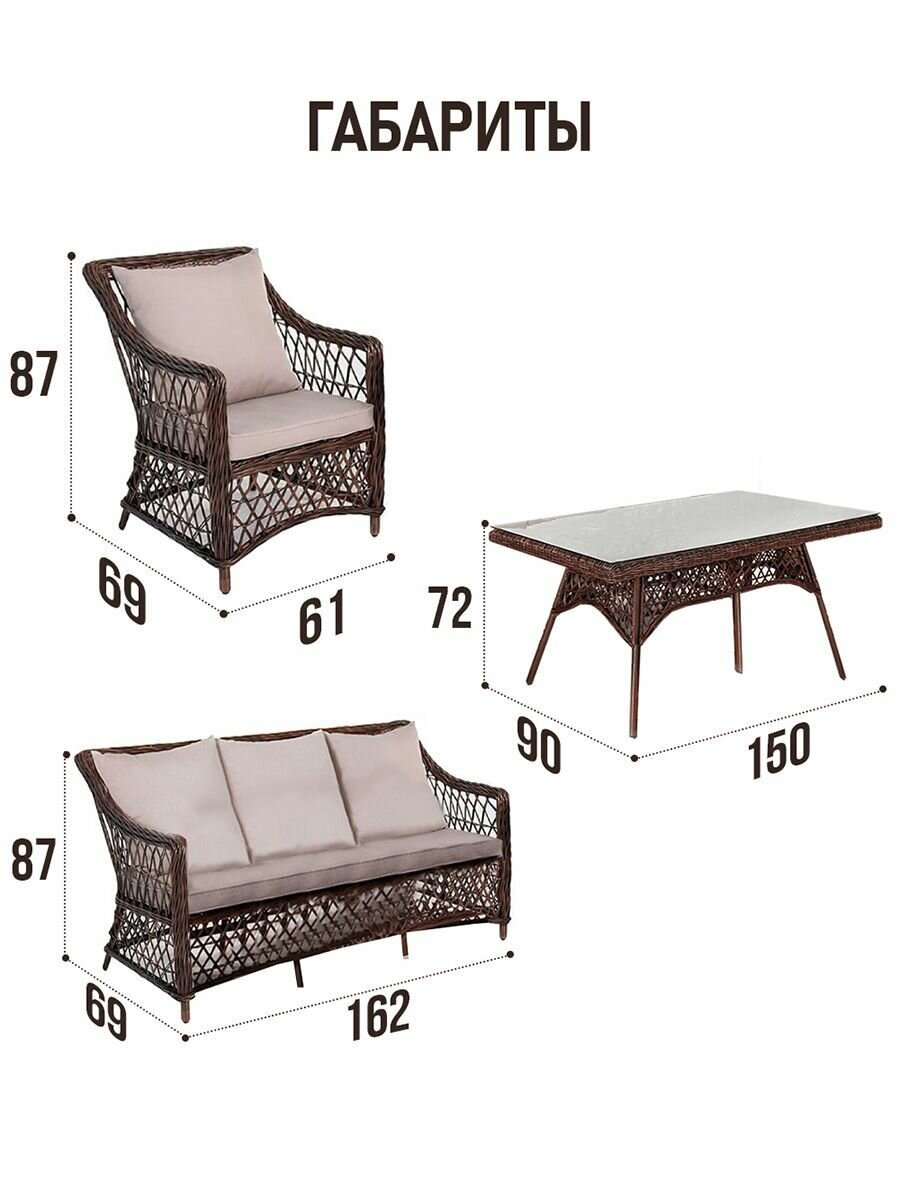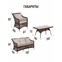 Представляем вашему вниманию стильный набор садовой мебели Пикник, идеальный выбор для обустройства вашего сада или веранды. Этот комплект плетеной мебели выполнен из высококачественного искусственного ротанга цвета кофе, что не только придаёт ему привлекательный внешний вид, но и обеспечивает долговечность и устойчивость к воздействиям внешней среды.