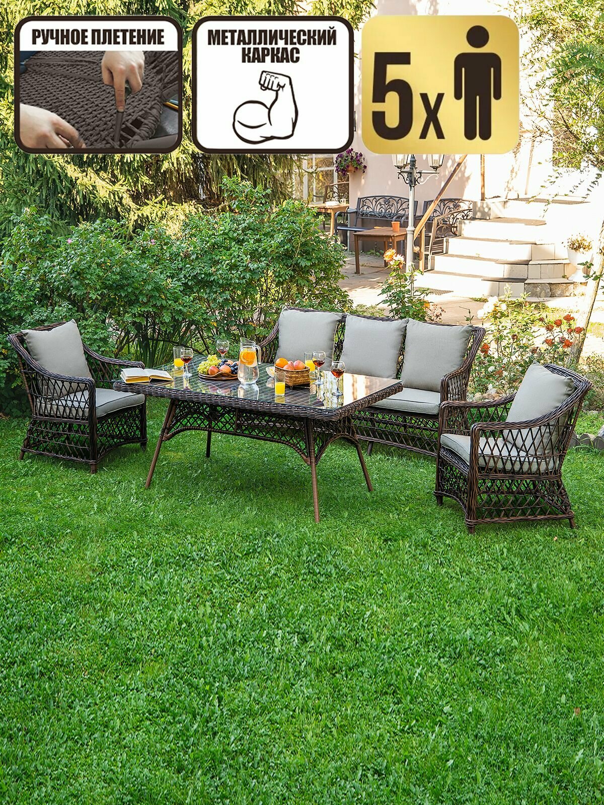 Мебель для улицы из ротанга сочетает в себе элегантный дизайн и практичность. Благодаря использованию современных материалов, она не боится сильных дождей и яркого солнца, что делает её идеальной для длительной эксплуатации на открытом воздухе. Комплект разработан с учётом последних трендов в области outdoor-дизайна, что позволяет создать уютную атмосферу для отдыха и общения.