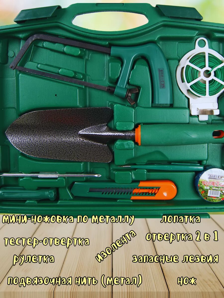 **Откройте для себя идеальный набор инструментов: коллекция 14 в 1 для вашего сада** Представляем вам профессиональный набор садового инвентаря, который станет незаменимым помощником для каждого дачника и садовода. Этот набор разработан с учётом всех потребностей и предлагает широкий спектр инструментов для ухода за растениями и клумбами. Каждый инструмент в наборе изготовлен из высококачественной стали, что гарантирует его прочность и долговечность. Благодаря этому, вы можете быть уверены, что ваш набор прослужит вам долгие годы. В набор входят различные виды лопаток, грабель, секаторов и других инструментов, которые помогут вам справиться с любыми задачами в саду. Будь то посадка, пересадка или рыхление почвы — у вас всегда будет под рукой необходимый инструмент. Компактный дизайн и эргономичная конструкция инструментов обеспечивают максимальный комфорт во время работы. Независимо от того, являетесь ли вы начинающим садоводом или опытным профессионалом, наш набор инструментов будет идеальным выбором для вас. Практичный и стильный кейс, в котором поставляется набор, позволяет легко хранить и транспортировать все инструменты. Теперь у вас всегда будет всё необходимое для выполнения текущих задач в саду и вокруг дома. Не упустите возможность приобрести идеальный набор инструментов для вашего сада. Он станет отличным выбором для любого садовода, который ценит удобство и качество.