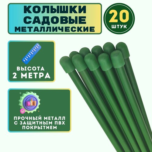Садовые колышки металлические с ПВХ покрытием 2 метра, набор 20 шт. Для подвязывания растений, включая овощи, цветы, кустарники и молодые деревья. Обеспечат оптимальные условия для роста и развития