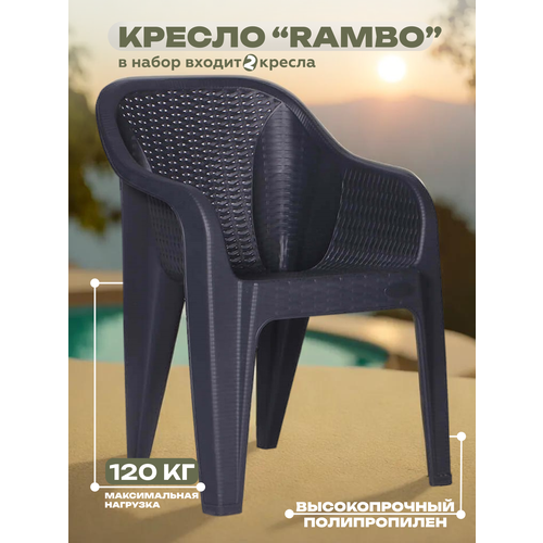 Набор садовых кресел RAMBO - это стильный и практичный выбор для вашего сада. В комплекте идут два кресла, выполненные из высокопрочного пластика, что обеспечивает их долговечность и устойчивость к различным погодным условиям.