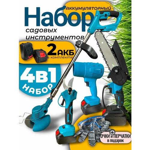 Купить Набор садовый инструментов аккумуляторный 4в1 секатор /пила / триммер / воздуходувка с доставкой по всей России.