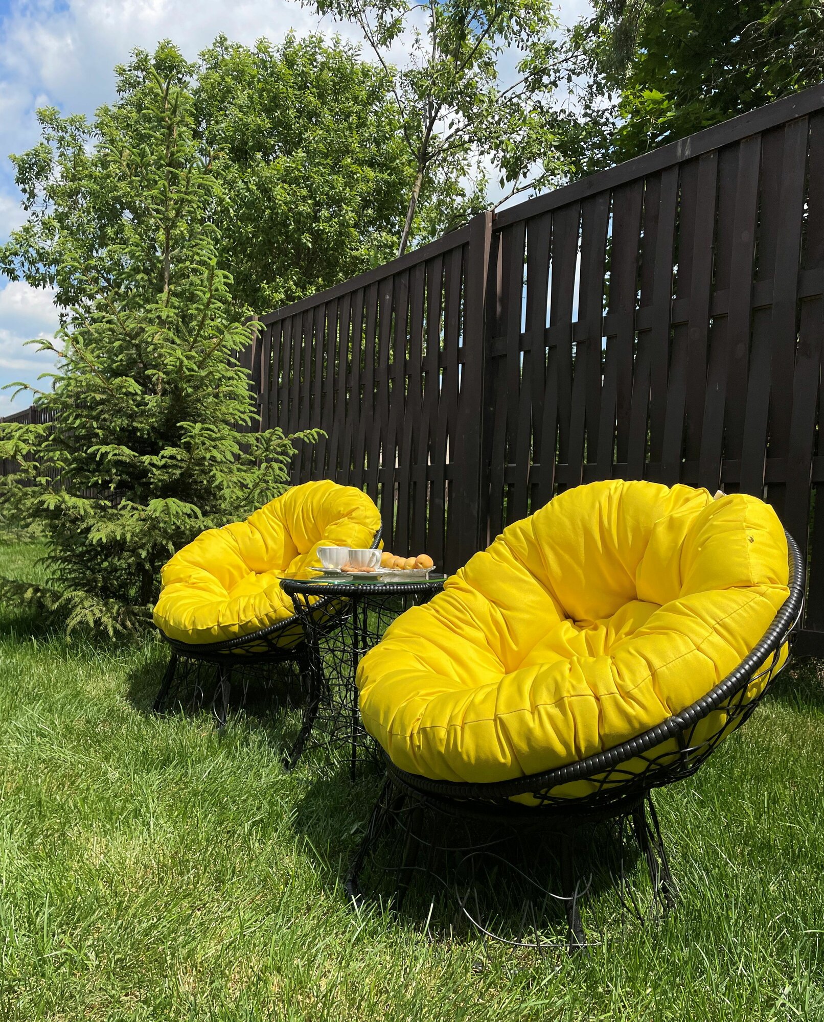 Купить Набор садовый папасан черный 2 кресла, столик + 2 подушки (желтый, полиэстер) с доставкой по всей России. Набор садовый папасан черный 2 кресла, столик + 2 подушки (желтый, полиэстер): сравнение цен, характеристики, фото, актуальное наличие и цены.