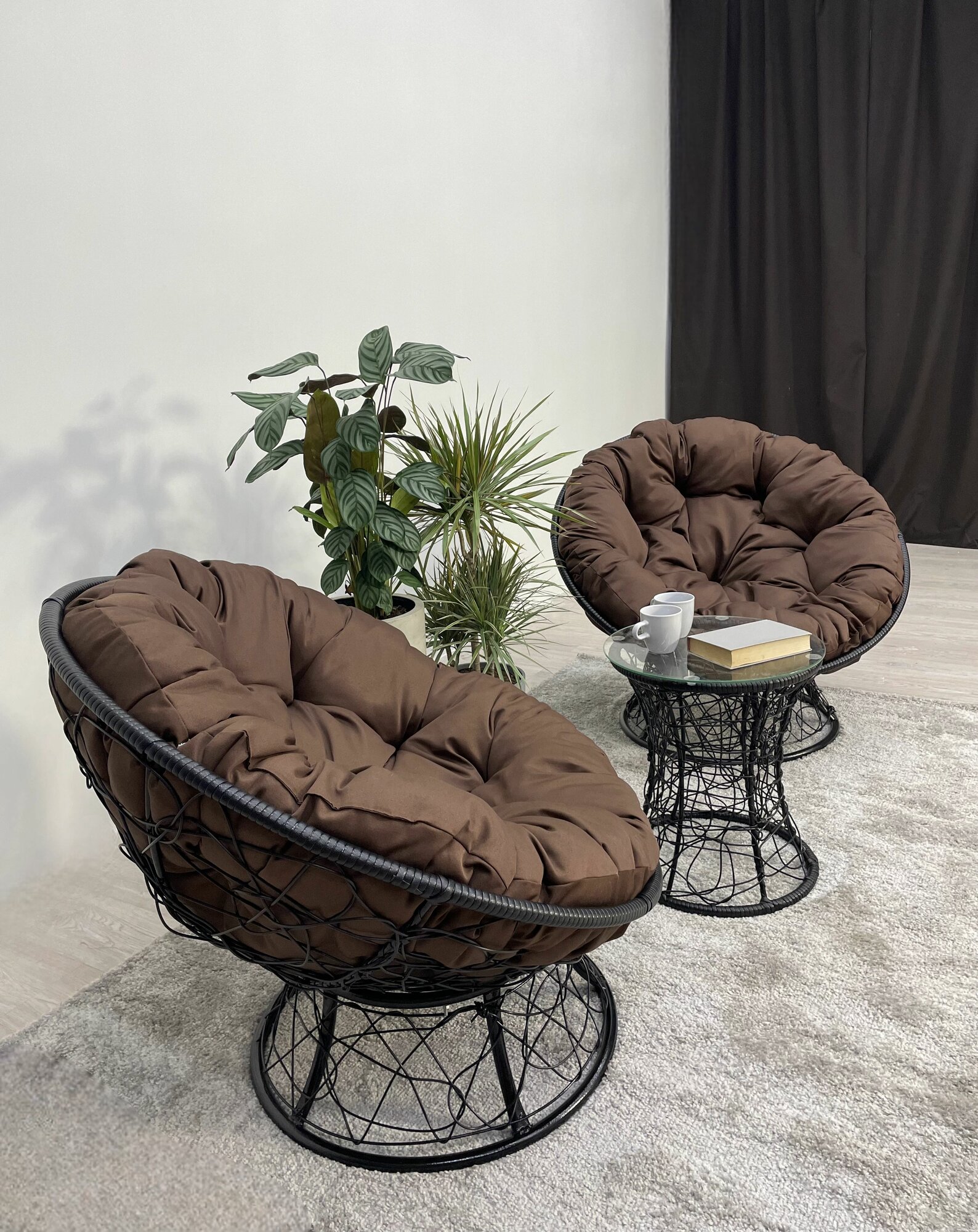 Купить Набор садовый папасан плюс черный 2 кресла, столик, 2 подушки (коричневый, полиэстер) с доставкой по всей России. Набор садовый папасан плюс черный 2 кресла, столик, 2 подушки (коричневый, полиэстер): сравнение цен, характеристики, фото, актуальное наличие и цены.