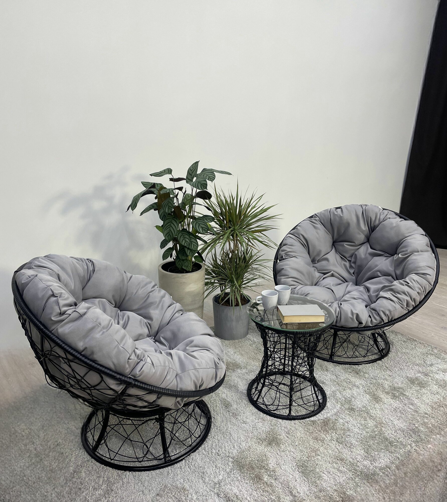 Купить Набор садовый папасан плюс черный 2 кресла, столик, 2 подушки (светло-серый, полиэстер) с доставкой по всей России. Набор садовый папасан плюс черный 2 кресла, столик, 2 подушки (светло-серый, полиэстер): сравнение цен, характеристики, фото, актуальное наличие и цены.