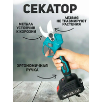 Характеристики секатора: Бесщеточный двигатель Аккумулятор Li-ion, 21 В, ёмкость 2000 мАч Мощность – 300 Вт Макс. толщина реза – 30 мм Масса – 1 кг.