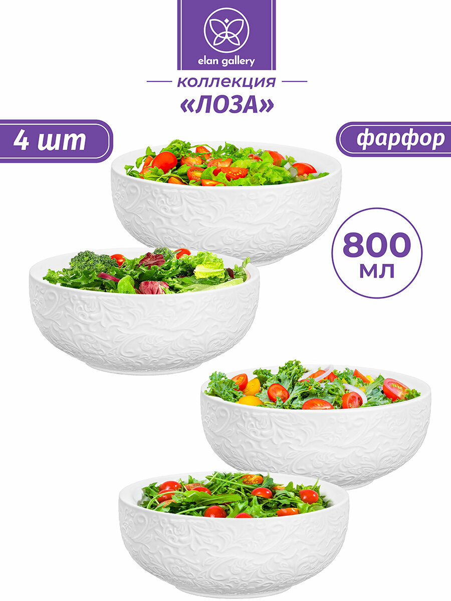 Набор салатников 4 шт по 800 мл Elan Gallery Лоза, 16,5х16,5х6 см: сравнение цен, характеристики, фото, актуальное наличие и цены.