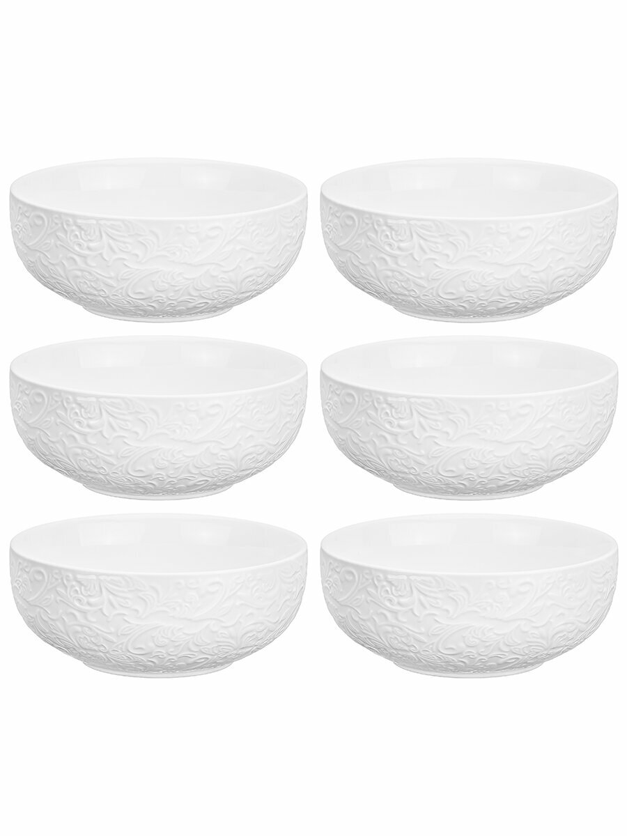 Набор 6 салатников "Лоза" изготовлен из белого фарфора. Размер каждого изделия – 16,5х16,5х6 см, объём – 800 мл. Каждый салатник украшен рельефным узором в виде вьющейся лозы. Салатники отлично дополнят вашу коллекцию фарфоровой посуды. Используйте их для любых закусок и угощений на празднике или вечеринке. Они подойдут не только для салатов, но и для солений, свежих овощей и кабачковой икры. Благодаря глубокой форме их можно использовать для плова, каши или супа. Сервировочные тарелки помогут красиво подать на стол печенье, конфеты и другие сладости. Высококачественный фарфор легко отмывается и не впитывает цвет продуктов. Не рекомендуется применять абразивные моющие средства. Можно использовать в микроволновой печи и мыть в посудомоечной машине. Набор поставляется в картонной упаковке. Он станет полезным подарком для любой хозяйки, ценящей стильную сервировку. Посуда “Лоза” станет украшением вашей кухни и поможет создать на ней уют.