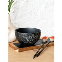 Набор керамической посуды серии Nero , черный матовый с гладкой поверхностью, декорирован каплями контрастного серого оттенка. Подробные характеристики салатник диаметр 14 см, высота 8 см, объем 720 мл, вес 488 г.