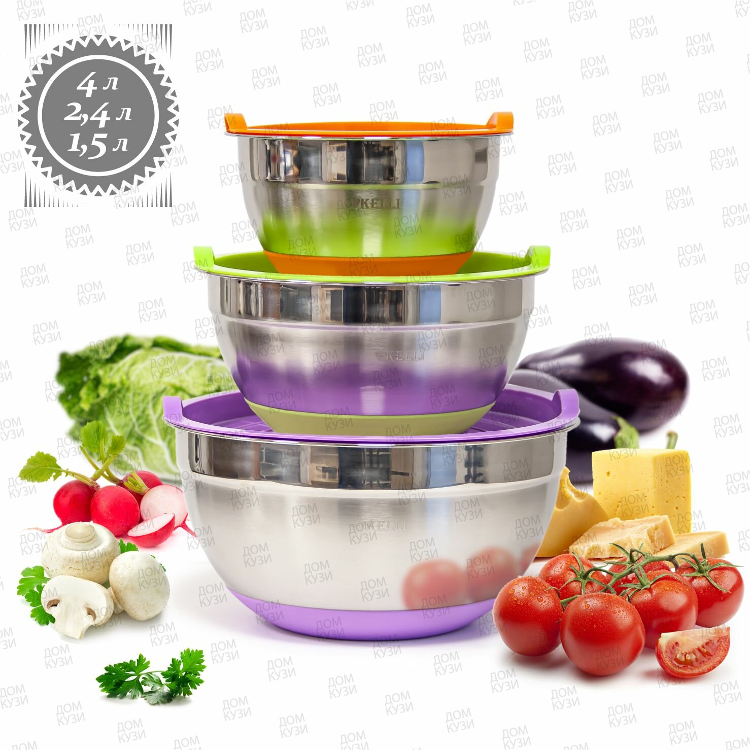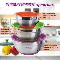 Купить Набор салатников KELLI из нержавеющей стали с крышками для хранения и смешивания 3 шт из нержавеющей стали с доставкой по всей России.
