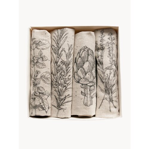 Салфетки украшены оригинальным принтом в виде ароматных растений, что делает их не только функциональным, но и стильным элементом декора, а так же приятно смотрится на столе. Принт наносится промышленным способом, поэтому вы можете не переживать за сохранность рисунка после стирок. Основа - натурального бежевого цвета, легко вписывается в любой интерьер.