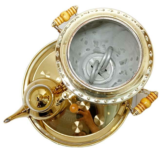 Материал: латунь лакированная Внутреннее покрытие: пищевое олово Мощность нагревательного элемента: 1 кВт Время закипания: 10 мин. Поднос: "Стальной" круглый. Чайник: золотистый, 600 мл Гарантия: 2 года Цвет: золотистый Материал: латунь Форма самовара: жолудь Объем самовара: 3000 мл. Вес товара: 3.8 кг. Размер товара (длина/ширина/высота): 25 / 27 / 37 см. Производитель: г. Тула Размер в упаковке (длина/ширина/высота): 35х45х35 Общий вес товара с упаковкой: 5000 гр.