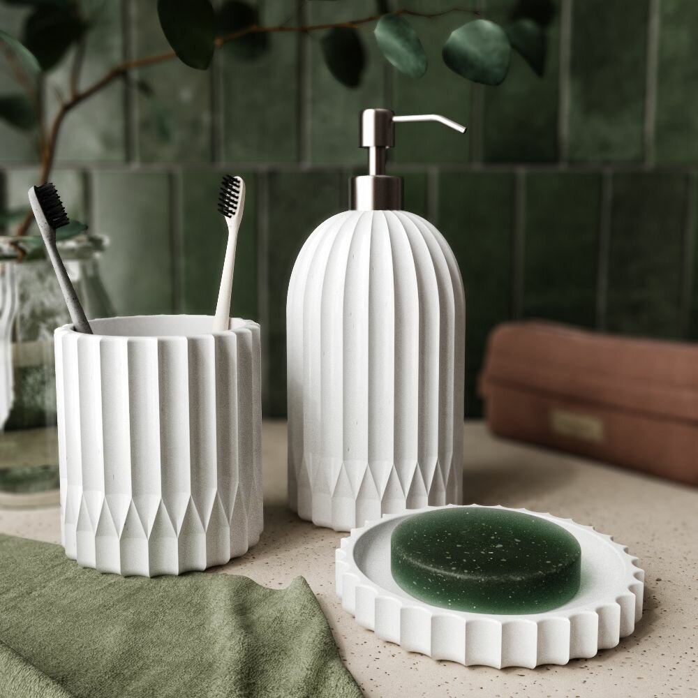 Стакан для зубных щёток и пасты, контейнер для ватных палочек и дисков или для любых небольших важных для вас вещей, мыльница, дозатор для любимого жидкого мыла.