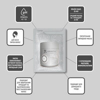 | Способ применения | Использование в качестве подложки перед процедурой: 1. Нанесите продукт массирующими движениями от корней до кончиков на влажные чистые волосы. Распределите по всей длине, уделяя особое внимание поврежденным кончикам. 2. Выдержите маску-подложку 15-20 минут на волосах. 3. Промойте волосы тёплой водой. Далее приступите к выпрямлению, тонированию, окрашиванию, восстановлению или химической завивке волос согласно инструкции вашего рабочего состава. Использование в качестве маски: 1. Нанесите продукт на влажные чистые волосы, отступая 2-3 см от кожи головы. Распределите по всей длине, уделяя особое внимание поврежденным кончикам. 2. Выдержите 15-20 минут на волосах. 3. Промойте волосы тёплой водой и высушите их феном. |