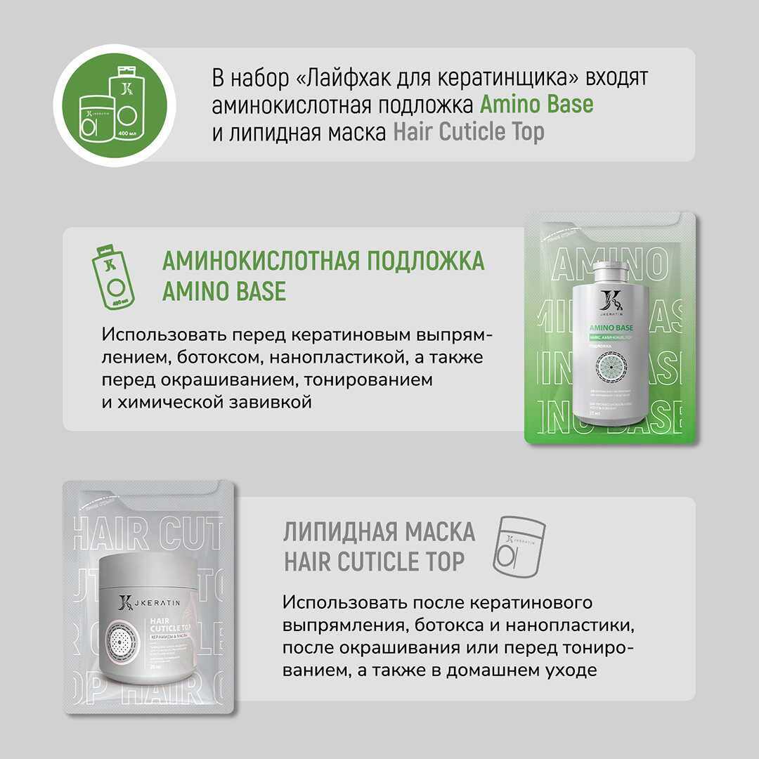 Купить Набор саше масок для волос JKeratin — Amino Base и Hair Cuticle Top, 4×20 мл с доставкой по всей России.