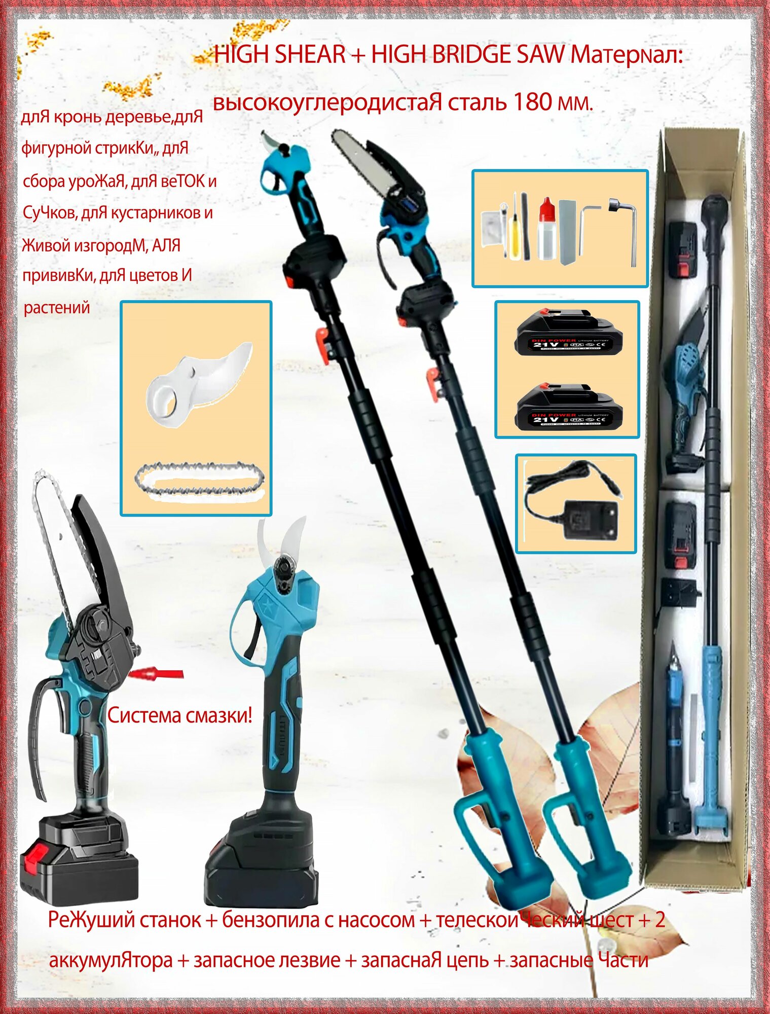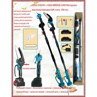 Купить Набор секатор + электроцепная пила N055, телескопическая ручка, 6″, 21В, 2 аккумулятора с доставкой по всей России.